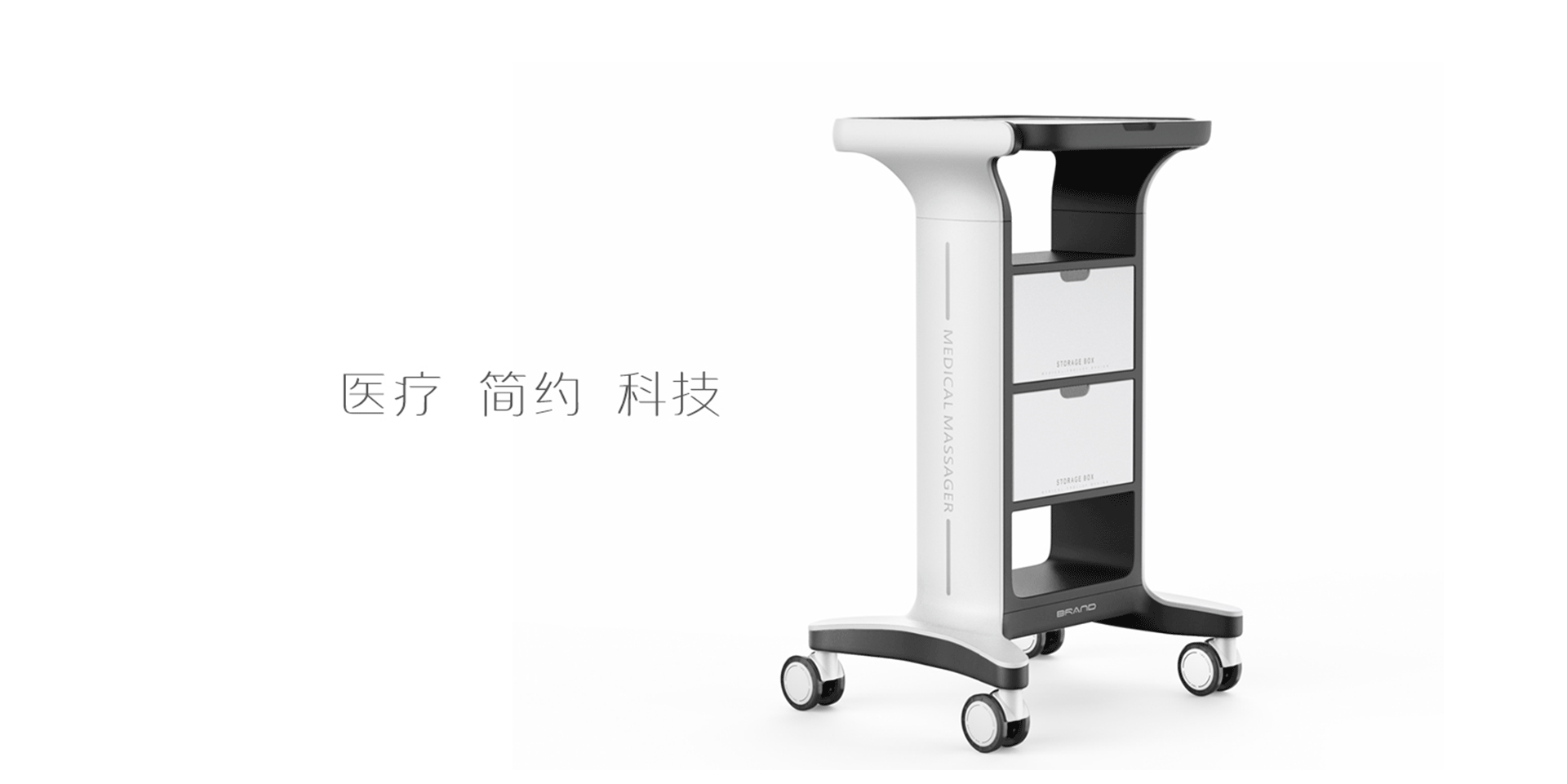 設(shè)計賦能醫(yī)療領(lǐng)域,解決醫(yī)療設(shè)備線以及配件收納問題,整體集合式設(shè)計,讓整個推車更緊湊輕巧。