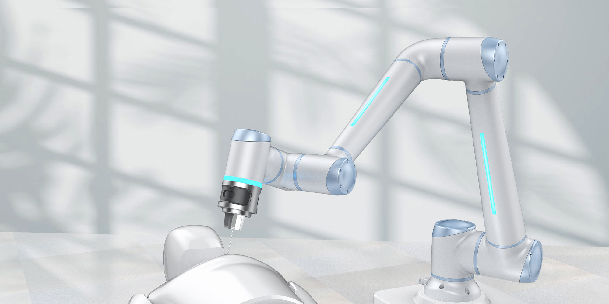這款協(xié)作機(jī)器人的設(shè)計(jì)簡(jiǎn)約大氣,流暢的線條凸顯產(chǎn)品的“精練”,提升產(chǎn)品的可靠性。淡雅的配色給人以親和的感覺,符合醫(yī)療器械安全干凈的特點(diǎn)。